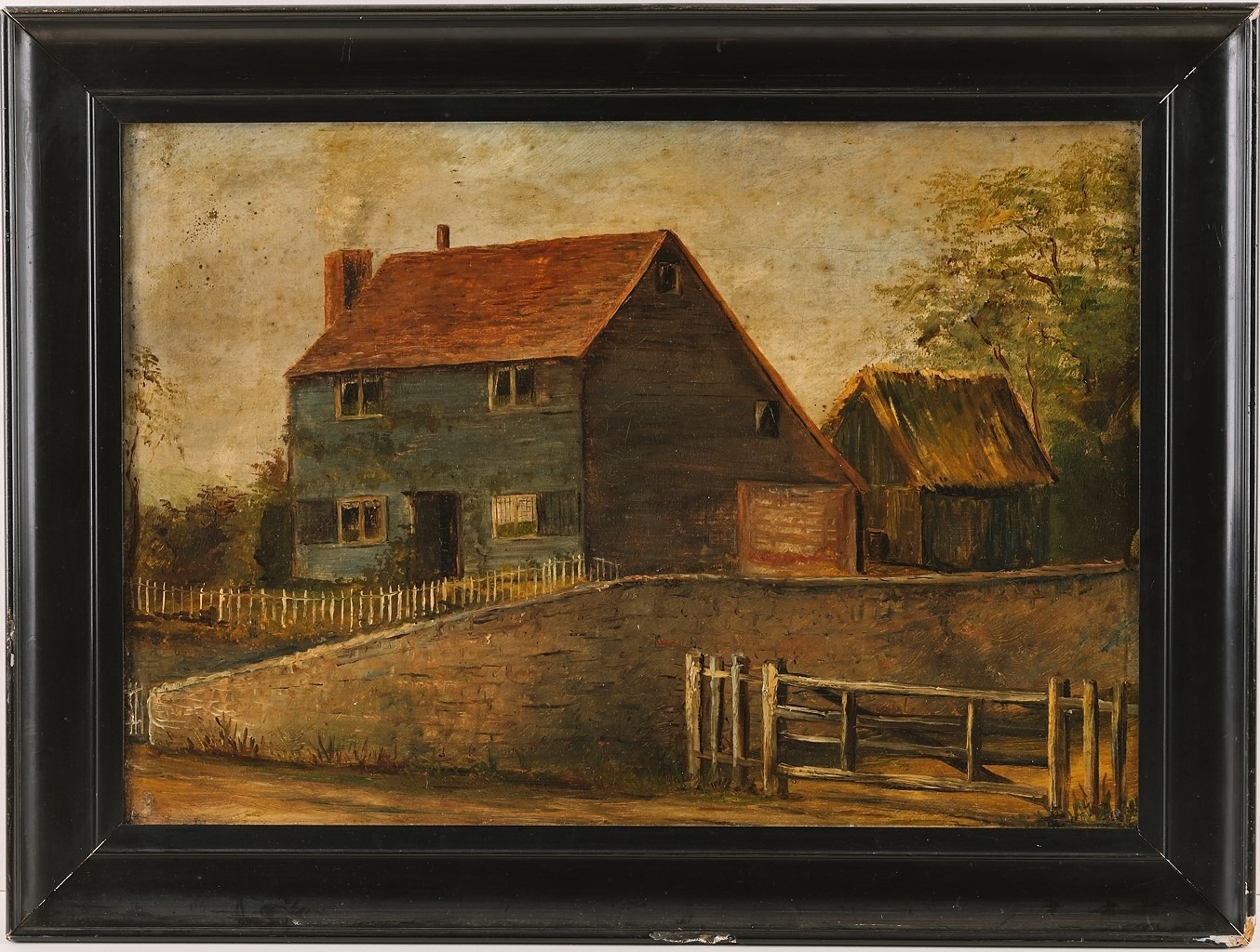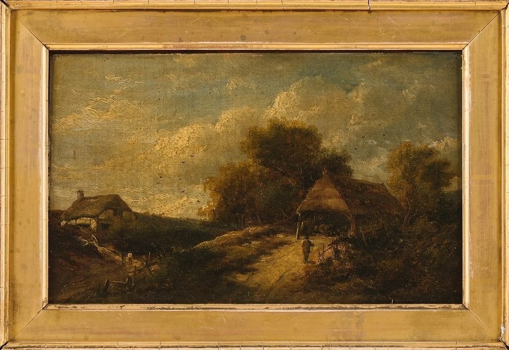 K1621 'Cottage Scenery in Kent', oil painting by Adam Barland, 1800s
