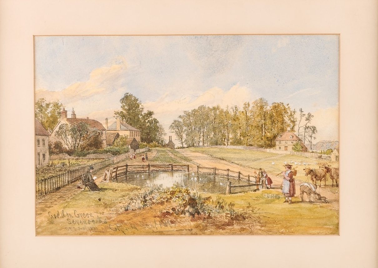 K1616 Watercolour painting of Godden Green pond, 1881
