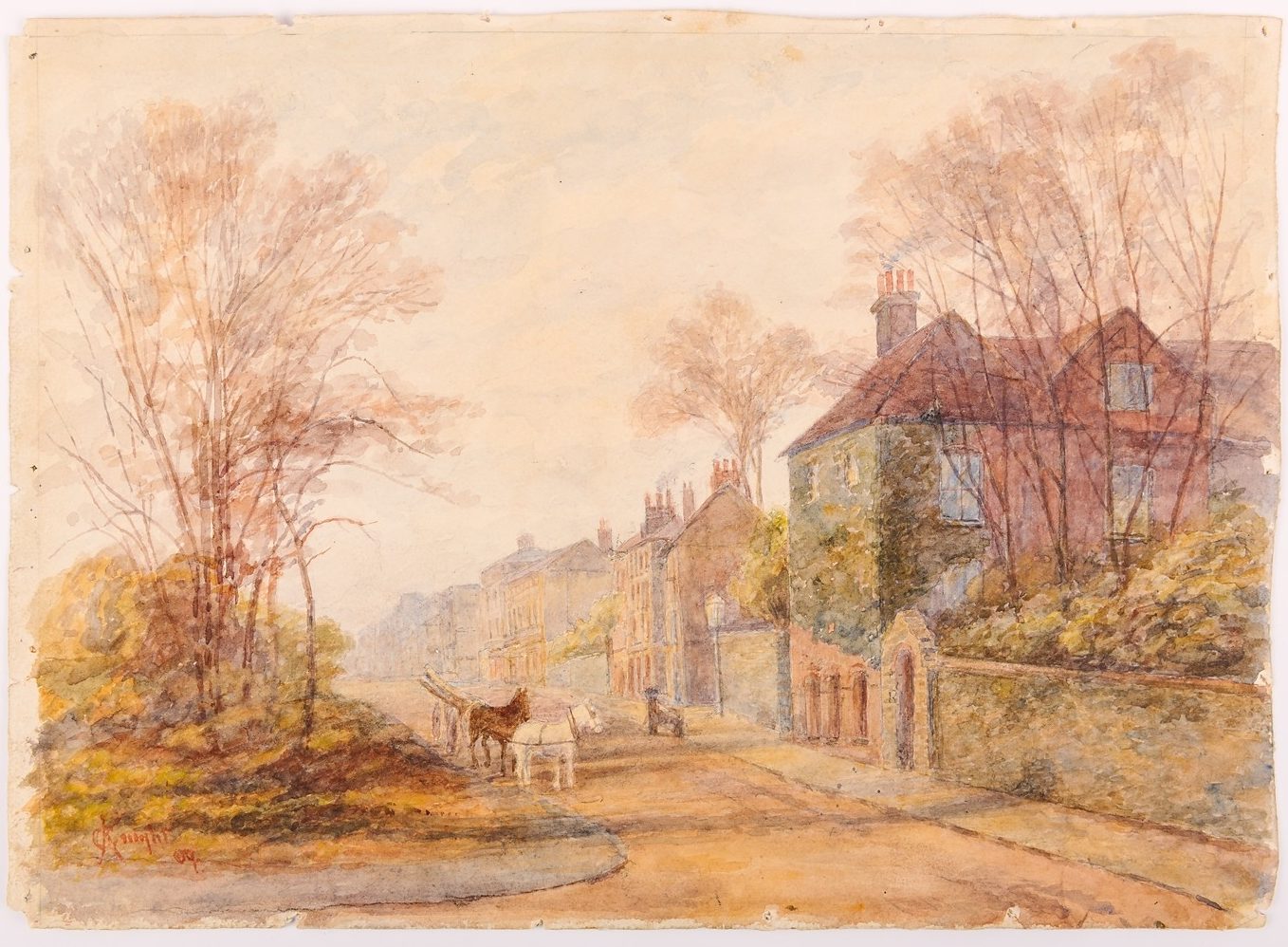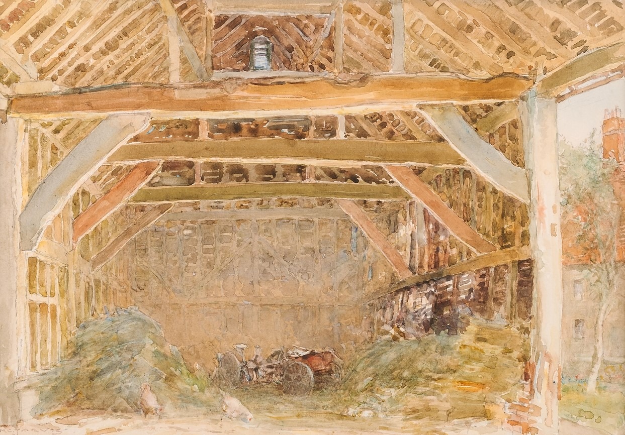 K1632 Watercolour of the barn at Brittain's farm by Henry Jarvis (1867-1955)